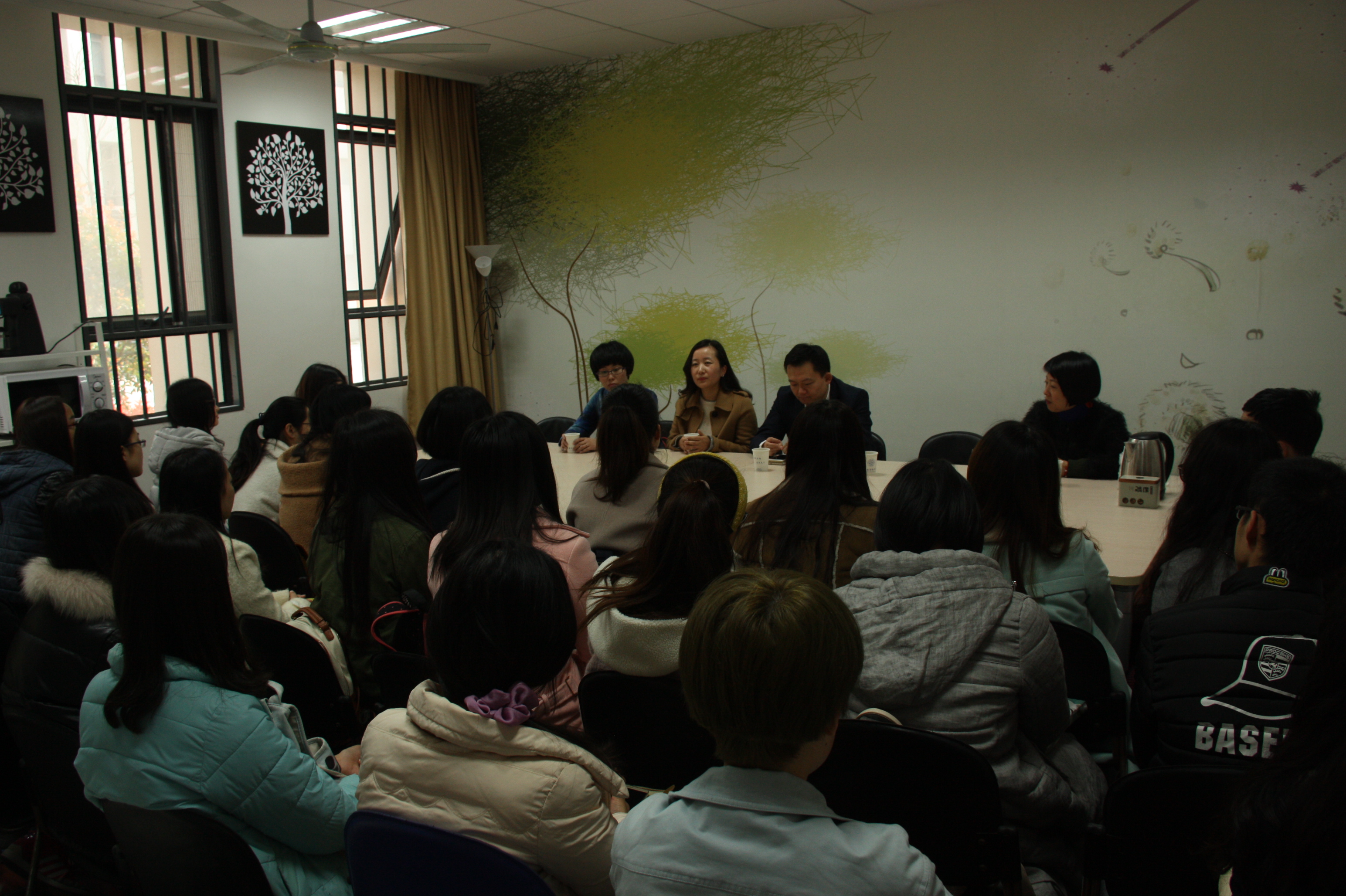 3月25日下午,糖心 98、99级法学专业迟梦洁、井永敏、吴俊、於亮等院友返回学院参加“凤回巢”校友职场说活动,并与学院领导、法律系教师及学生代表座谈,共话学院发展。