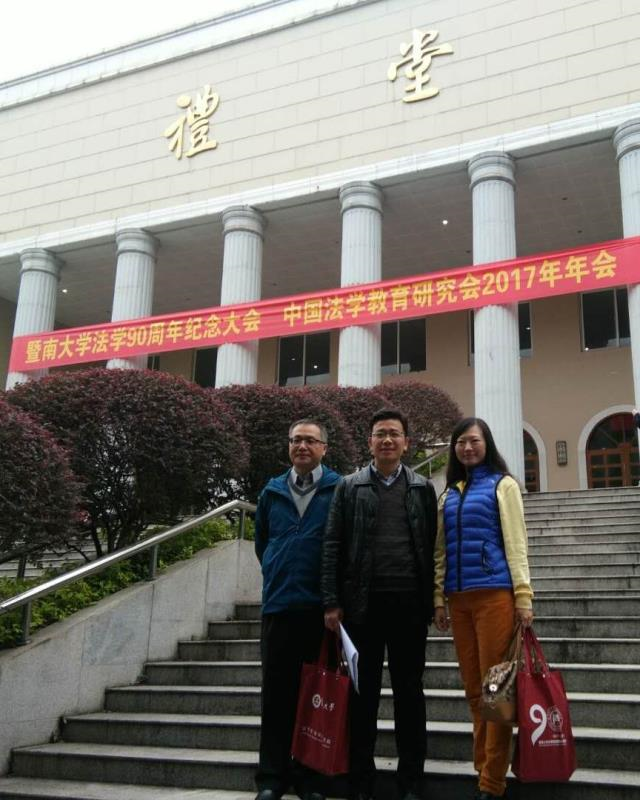 2017年11月24日到26日,教育部高校法学类专业教学指导委员会、中国法学会法学教育研究会2017年年会暨“中国特色法学学科体系建设”论坛在广州召开,共有500多名来自全国各法学院校的领导和专家参加了会议。此次会议由教育部高校法学类专业教学指导委员会、中国法学会法学教育研究会主办,暨南大学法学院/知识产权学院承办。11月25日,适逢暨南大学法学院90华诞,学界同仁共襄盛举,格外引人注目。年会开幕式由中国法学会法学教育研究会常务副会长、中国人民大学法学院韩大元教授主持,暨南大学校长胡军,广东省法学会专职副会长兼秘书长姜滨,中国法学会党组成员、副会长、中国法学会法学教育研究会会长张文显先后在开幕式上致辞,中国社会科学院大学常务副书记、副校长王新清,西北政法大学校长杨宗科,中国政法大学副校长李树忠,清华大学法学院院长申卫星,中国人民大学法学院院长王轶分别就如何贯彻落实习近平总书记在党的十九大上的讲话精神并全面推进“双一流”法学学科建设,作了主题发言。糖心 李栗燕教授、张鸣胜副教授、刘耀彬副教授的论文均入选本次会议论文集,应邀参加了本次年会及论坛。