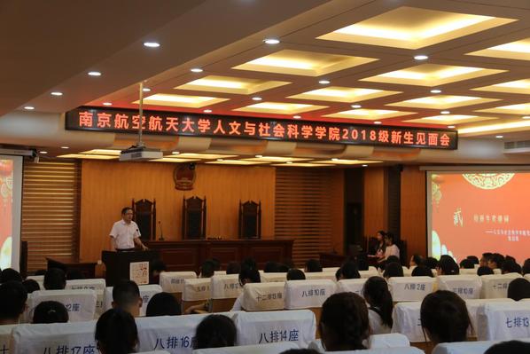 随后,2018级新生见面会于人文学院楼模拟法庭举行。全体学院领导、学科负责人、专业负责人、系主任、系书记和各班班主任、教师代表、学院行政、辅导员参加了本次见面会,共同迎接来自五湖四海的2018级本科及研究生新生。见面会在专业介绍视频中拉开帷幕,学院党委副书记尹春苹首先向在座新生们介绍了与会领导和各位老师,帮助新生们进一步了解学院的基本情况和师资力量。学院党委书记张启钱老师代表学院向新生致欢迎辞,迎接各位新生加入人文院的大家庭。在致辞中,张书记提出同学们需要尽快完成高中生到大学生的角色转换,思考大学和未来的人生规划,同时激励新生们应当严格要求自己,做一名高素质公民。院长王建文教授则围绕“成为一个什么样的人,怎样成为这样的人”对“厚德弘毅,博学创新”的院训进行深入解读,鼓励同学们在大学期间制定各类目标,度过充实的大学生活。最后,2018级本科生刘梦洁作为新生代表发言,她向学院领导、老师和学长学姐们在迎新工作中的支持和帮助表达感谢,畅谈了自己对于大学生活的美好憧憬与期待,并表示一定会在学业上努力奋发向上。随后,各系部老师与2018级新生就专业培养进行了面对面交流,全面介绍了学科和专业的情况,帮助新生建立起对学科专业的初步了解,并解答了学生关于专业和学习的疑惑,为同学们今后专业学习奠定了良好基础。