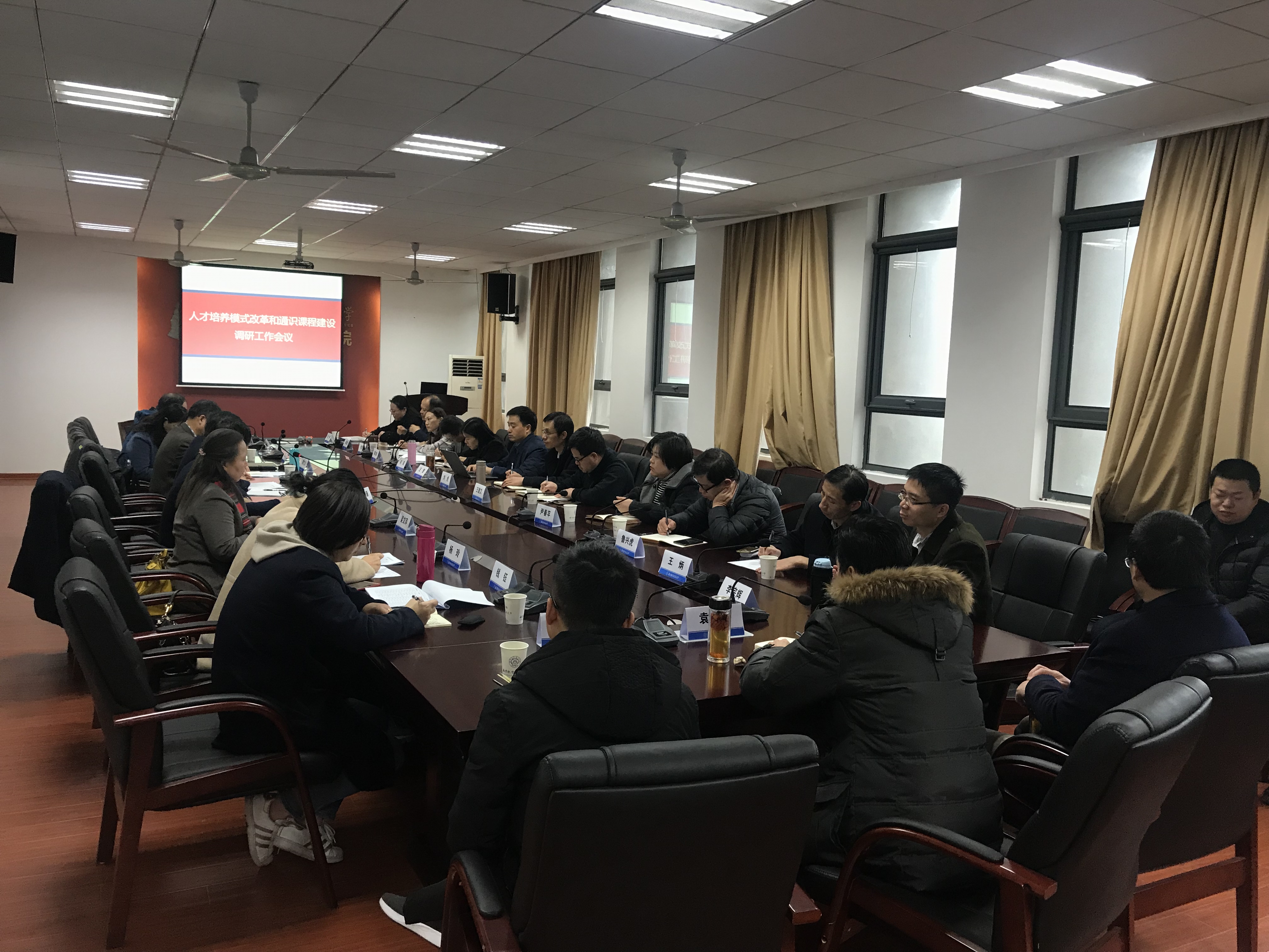 2018年12月20日,副校长施大宁、教务处处长孔垂谦、教师发展与教学评估中心主任周克印、教务处副处长梁文萍一行来人文学院就人才培养模式与通识课程建设问题进行调研。学院党委书记刘虎、院长王建文、党委副书记尹春苹、院长助理鲁兴虎、王炳、李宗辉、教师代表戴传江、袁建军、武小龙参加了座谈会。