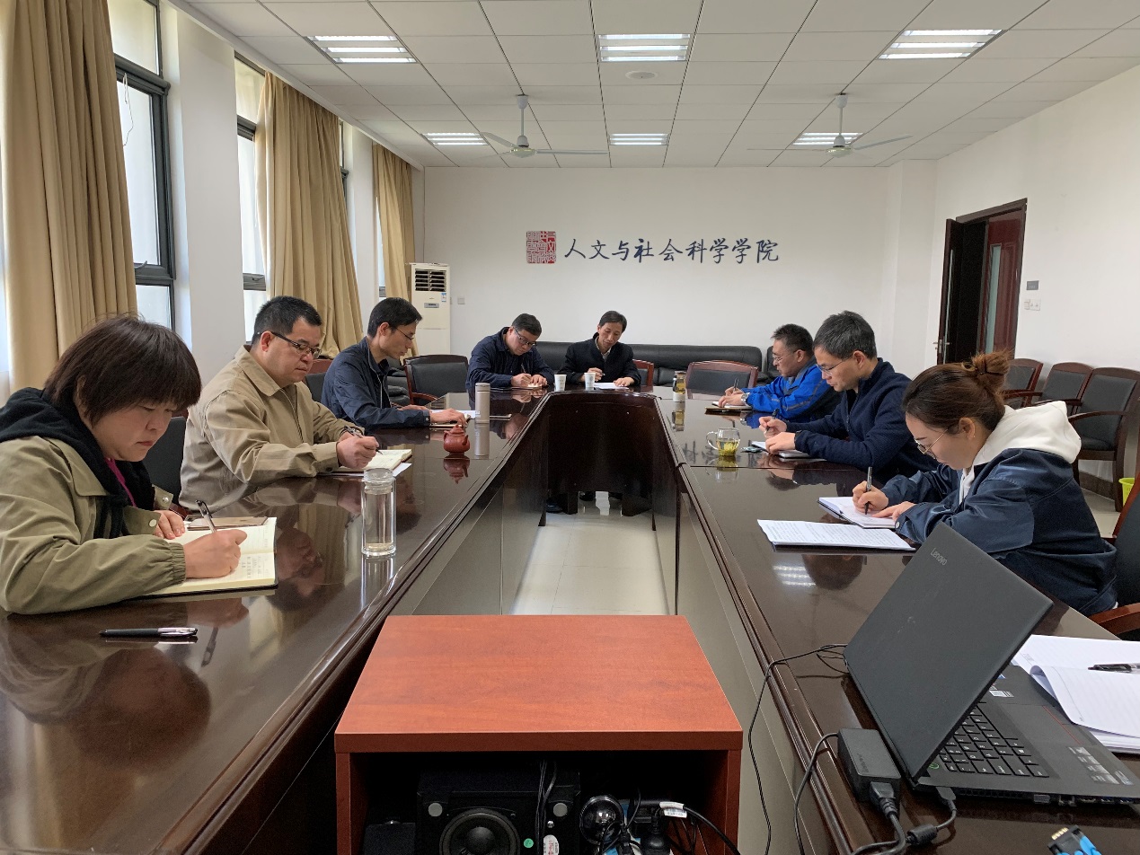 2019年4月15日,人文学院召开第三次党委(扩大)会议暨巡察工作专题会,学院党委书记刘虎主持,院长王建文、副书记尹春苹、副院长施向峰、党委委员贺富永、院长助理鲁兴虎、办公室主任王晓庆参加会议。