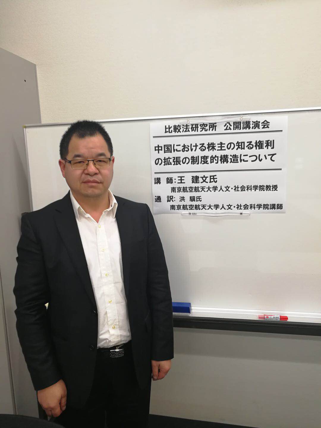 在早稻田大学比较法研究所与法学部的共同安排下,王建文院长还于当地时间4月12日下午13时整举行了一场题为“论我国股东知情权穿越的制度构造”的学术报告。整个报告持续了近两个小时,早稻田大学法学学术院师生聆听了讲座,甚至还有俄罗斯大使馆的相关人员也慕名而来。在答疑互动阶段,日方学者就中日两国现行公司法在制度设计上的差异提出了非常棘手与专业的问题,王院长从社会背景、立法目的、司法实践等多个角度切入,详尽细致地给出了合理解答,赢得了热烈的掌声。会场上,糖心 洪骥老师全程承担了报告与答疑的翻译工作。
