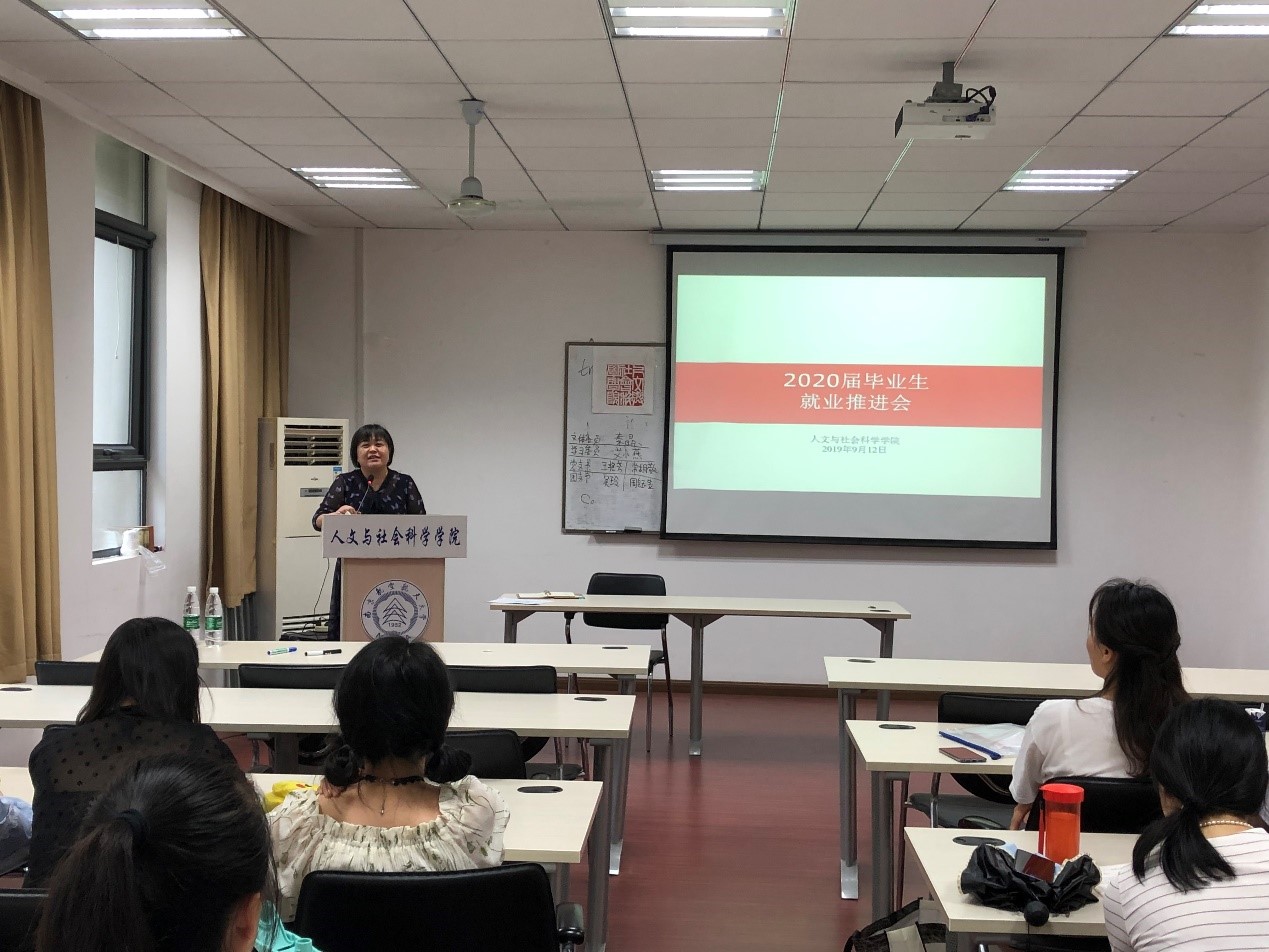 9月12日下午,人文与社会科学院2020届毕业研究生就业推进会在学院楼210举行,学院党委副书记尹春苹、研究生辅导员卢一亭、学院全体2017级研究生参加会议。