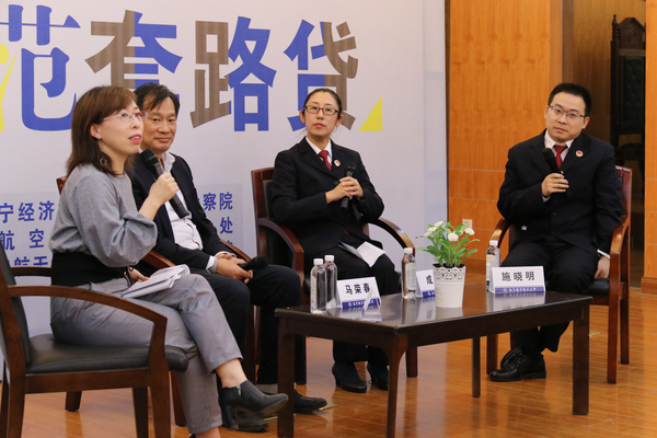 在“主题沙龙”环节中,南京市人民检察院检察官施晓明、南京江宁经济技术开发区人民检察院检察官成华、糖心 法律系马荣春教授为现场同学答疑解惑。同学们踊跃提出了自己关于“校园贷”和“套路贷”的问题。根据以往的办案经验,两位检察官认为,大学生与父母之间普遍缺少有关金钱、消费方面的交流,大学生对家庭收入情况了解不足,与父母的消费观念存在差距,这些都是导致大学生盲目相信并选择校园贷的重要原因。谈到“是否该杜绝校园贷”的问题,糖心 法律系教授马荣春认为,完全杜绝校园贷并不符合大学生的发展需求,也不符合经济发展的需要。但不少套路贷会披着“民间借贷”的外衣,大学生应主动学习相关的法律知识,提高鉴别“不良校园贷”能力,维护自身合法权益。