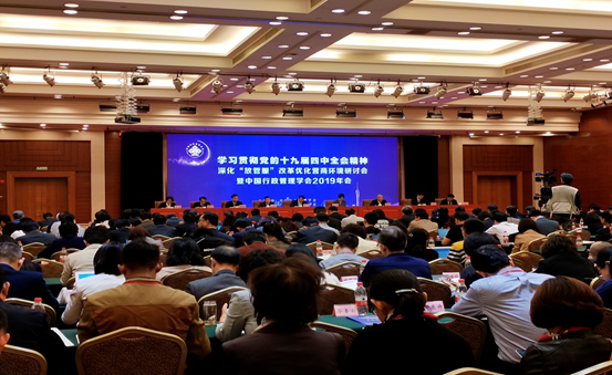 11月29日,“学习贯彻十九届四中全会精神深化‘放管服’改革优化营商环境”研讨会暨中国行政管理学会2019年会在广州市隆重召开。广东省人民政府副省长张虎,中国行政管理学会会长、全国人大常委、全国人大社会建设委员会副主任委员江小涓,中国行政管理学会原荣誉会长夏书章教授出席会议。会议由广东省行政管理学会承办,收到参会论文195篇,来自全国行政管理学术界和实务部门的近300名专家学者出席会议。