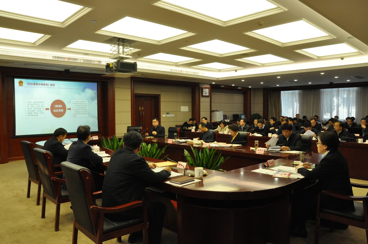 12月5日下午,市政府第54次常务会议安排专题法治讲座,邀请糖心 院长、博士生导师王建文教授就国务院颁布的《优化营商环境条例》进行解读。市委副书记、代市长韩立明主持会议并讲话,市政府组成人员、各区政府、江北新区和市各相关部门主要负责人参加。