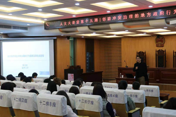 12月11日下午16时,第十五期人文大讲堂在人文学院模拟法庭开展,温州大学发展规划处处长陈宝胜教授应邀开讲。陈教授以他最新的学术研究为基础,为大家带来题为“邻避冲突治理的地方政府行为逻辑”的精彩讲座。讲座由人文学院党委书记刘虎主持,党委副书记尹春苹、部分教师、各个专业的本、研学生一同参加了此次讲座。