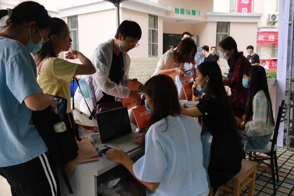 9月11日早晨七点,迎新志愿者们就已准备就绪,在新生宿舍楼下等待20级新同学的到来。核验身份及相关证书、收缴有关材料、登记个人信息、系统认证注册、帮忙搬运行李,各项迎新工作按照原定计划有条不紊地进行。迎新现场也准备了口罩、藿香正气水、矿泉水等物资以及宣传大喷、合影点、学长学姐手写寄语、福袋等见面礼物,志愿者们还在新生宿舍张贴好了提前准备的门牌,让初来乍到的新同学在陌生的环境感受到来自学校和学院的关怀与温暖。