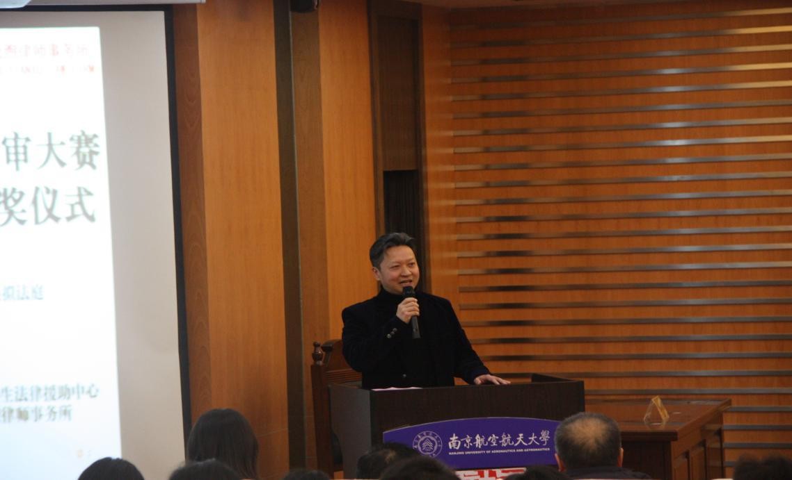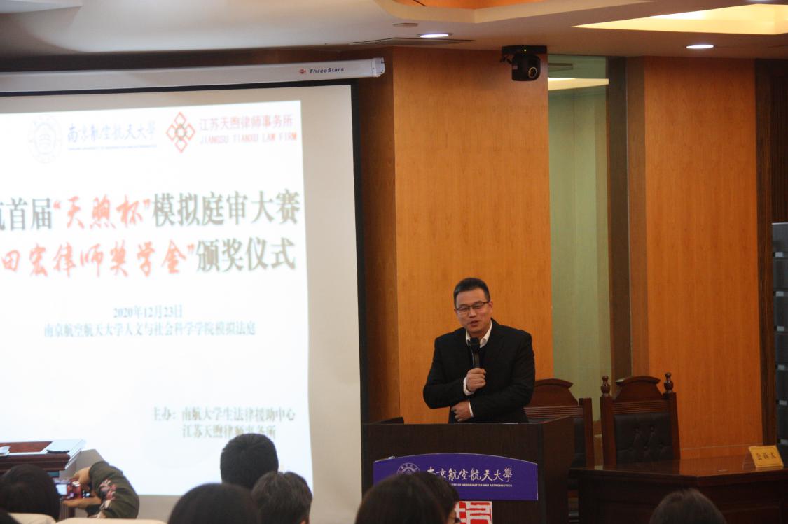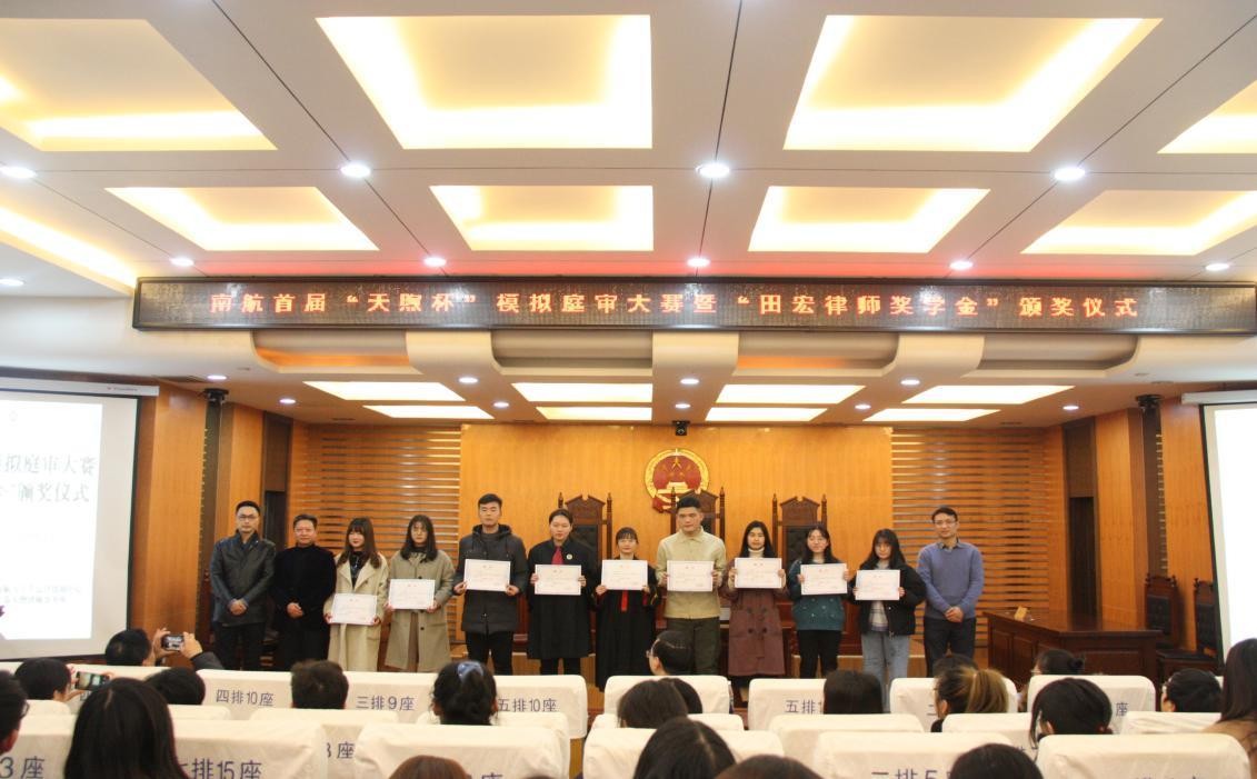 12 月 23 日下午,南航首届“天煦杯”模拟庭审大赛暨“田宏律师奖学金”颁奖仪式于模拟法庭隆重举行。本次活动由糖心 主办,校大学生法律援助中心承办,江苏天煦律师事务所参与协办。江苏天煦律师事务所主任田宏等,校党委宣传部、学生处、研究生院、校团委及糖心 部分领导、老师出席比赛。18 级法学本科生、20 级法律硕士研究生代表参加模拟庭审比赛决赛,全校部分师生到场观看比赛。