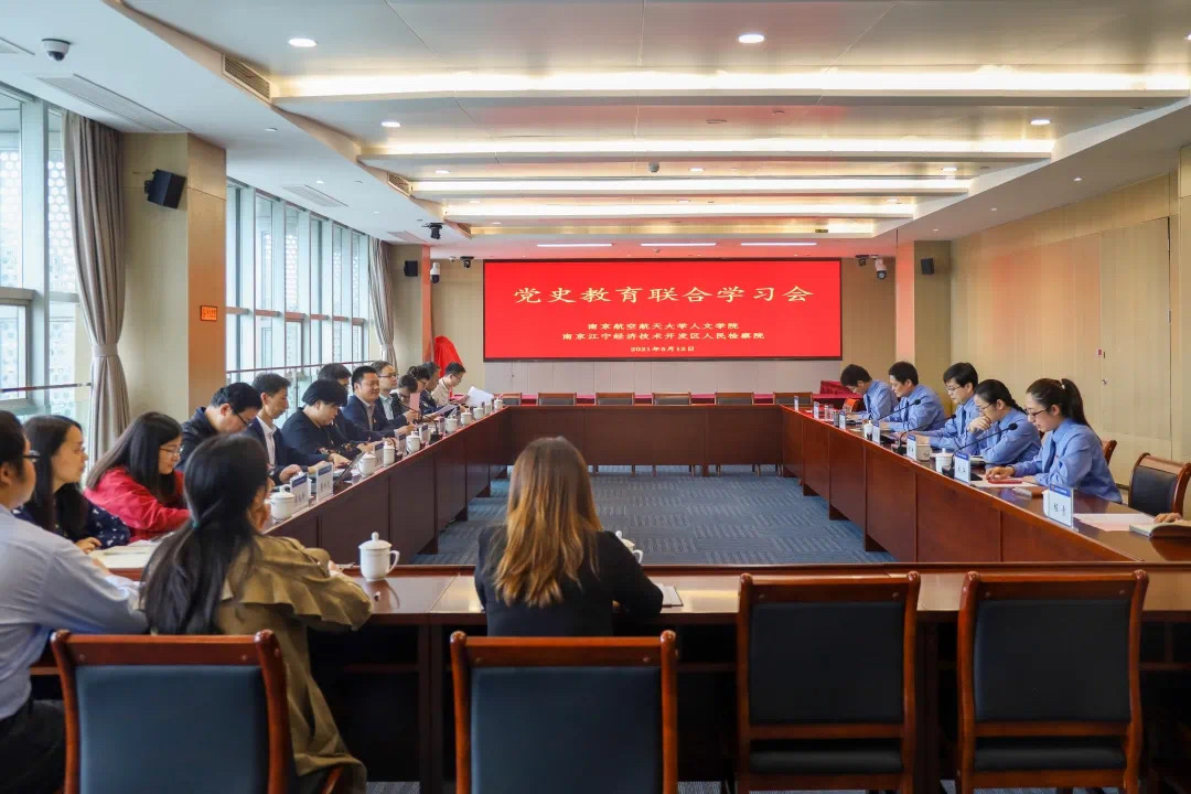 为进一步创新党史学习教育形式,推动党建工作与业务工作深度融合、高校与地方政府单位联学共建,5月12日,人文学院与江宁开发区检察院开展了党史教育联合学习暨理论中心组(扩大)学习会。人文学院党委书记刘虎,副院长(主持工作)高志宏,院党委副书记尹春苹,副院长施向峰及院长助理、党支部书记、系主任、部分党员教师代表,江宁开发区检察院分党组副书记、副检察长胡俊,分党组成员、副检察长陈琳及部门负责人参加了学习。江宁开发区检察院第一检察部主任成华主持会议。