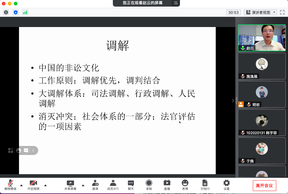 6月17日晚,人文大讲堂第30期于线上顺利举行,香港大学法律学院法律系主任、博士生导师赵云教授继续在腾讯会议为大家带来了“国际航空的争议解决”系列讲座第二场。讲座由人文学院副院长(主持工作)高志宏教授主持,聂明岩副教授作为与谈人,本科生、硕士生参加了此次线上讲座。