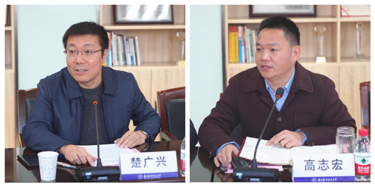 院党委书记楚广兴结合学院实际情况,从守牢阵地、防范风险、压实责任三个方面提出了进一步改进和加强学院意识形态工作的思路和举措。他强调,学院既要守好有形阵地,更要守好无形阵地;既要及时处置风险,更要主动预防风险;既要层层传导责任,更要层层压实责任。院长、院党委副书记高志宏,从国家安全法视角,结合学院专业和学科建设,从国家安全的概念、新的国家安全观的变化、法治视角下国家安全观的重要内容以及具体案例四个方面阐释了学院将以国家安全学科建设为背景,进一步推动意识形态工作与学院学科发展建设相融合的目标与策略。