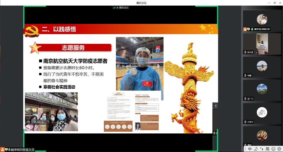答辩会上,7名预备党员依次对个人在预备期内的工作、思想、生活、学习等方面进行了汇报,总结了自己的缺点和不足,提出了改进措施,并表明了自己对标改进、提升自我,时刻以党员标准要求自己的决心。评审小组认真倾听,并给予同学们诚恳的建议,提出殷切的期盼。