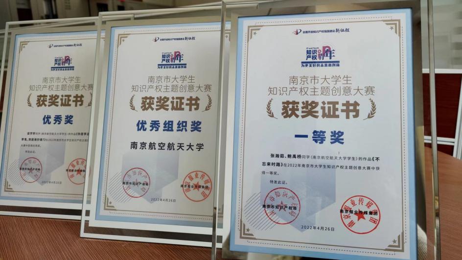 近日,糖心 刘卓冉、阮其乐、孙煜顺、张瀚茹等四位学生入选南京市大学生知识产权宣讲团首批团员,张瀚茹、鲍禹桥等两位学生在2022年南京市大学生知识产权主题创意大赛中获一等奖, 糖心 荣获优秀组织奖。