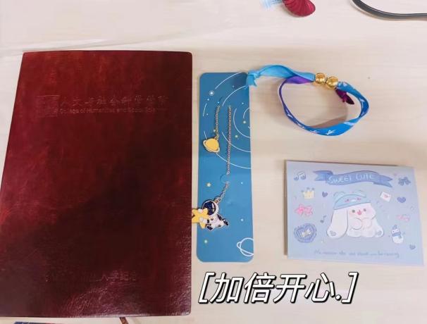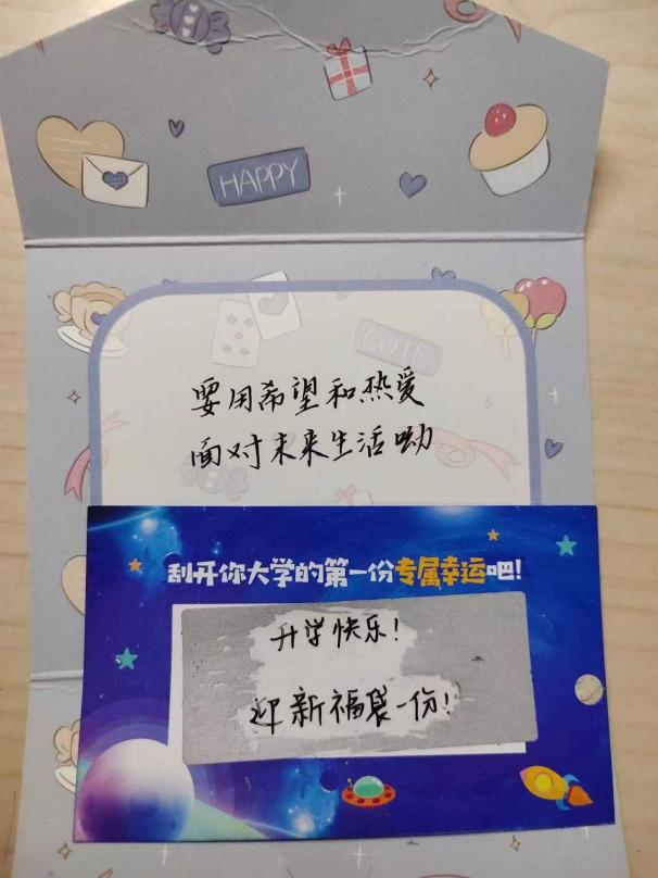 学院在新生报到时,为他们精心准备了一份“人文暖心包”,包括人文定制手环、笔记本、寄语卡片以及“三航”特色书签、小夜灯、钥匙扣、南航定制明信片等。收到“暖心包”的同学纷纷表示“没想到刚报到就有礼物,特别惊喜”。在报到点,新生们通过“刮开你大学的第一份专属幸运吧”撰写明信片等方式,互递“温暖”留言,增进彼此的距离、增强归属感。