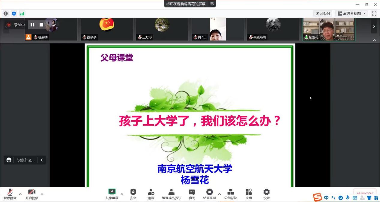随后,学校心理健康教育主任杨雪花老师为家长们带来《孩子上大学,我们该怎么办?》的主题讲座。