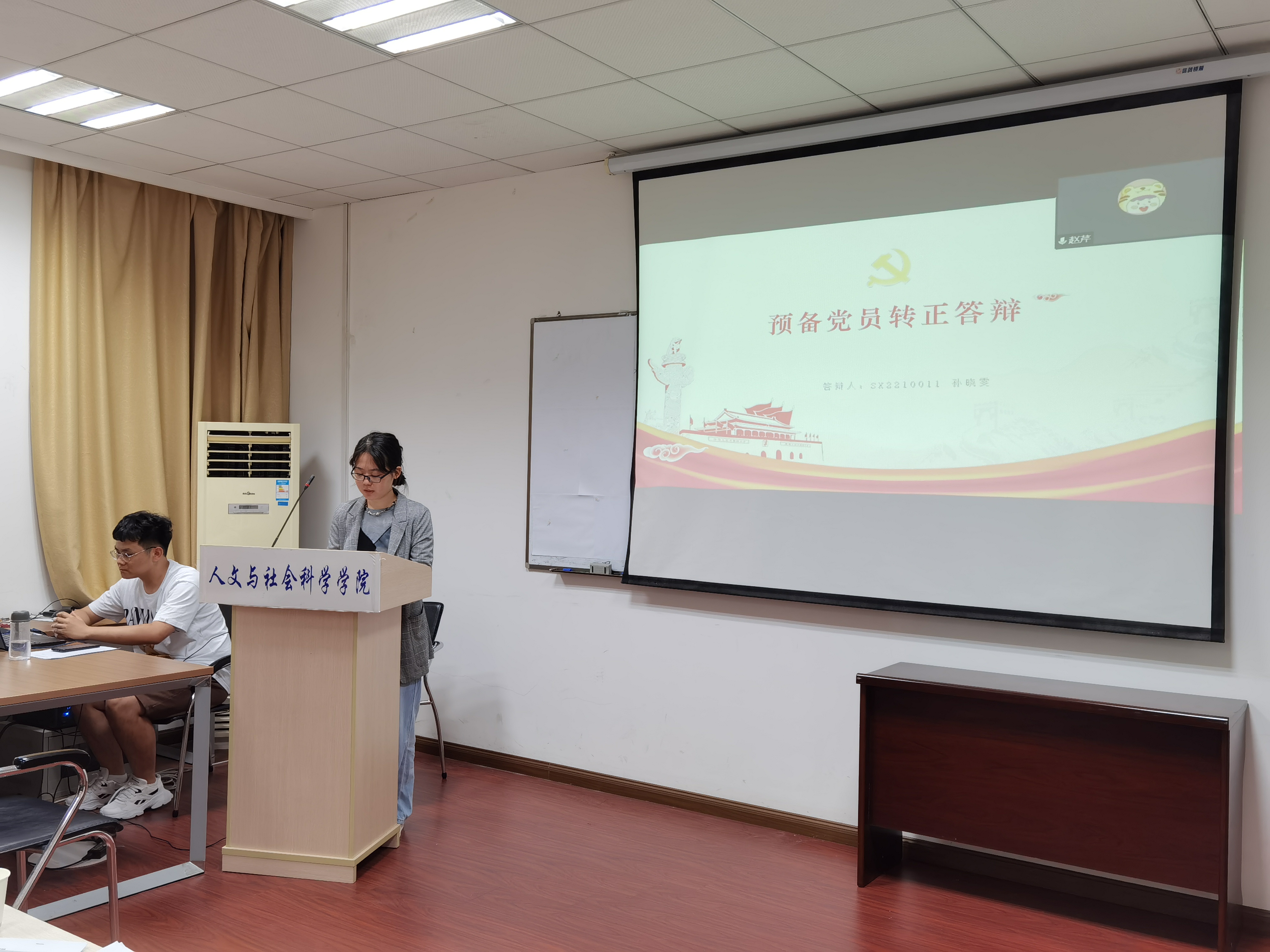 为进一步规范党员发展程序,提高党员发展质量, 9月19日下午,糖心 在210会议室召开了预备党员转正答辩会。为严格落实疫情防控要求,本次会议采用线上线下相结合的方式。院党委副书记刘思辰、正科级组织员谢丽、辅导员参加了评审。