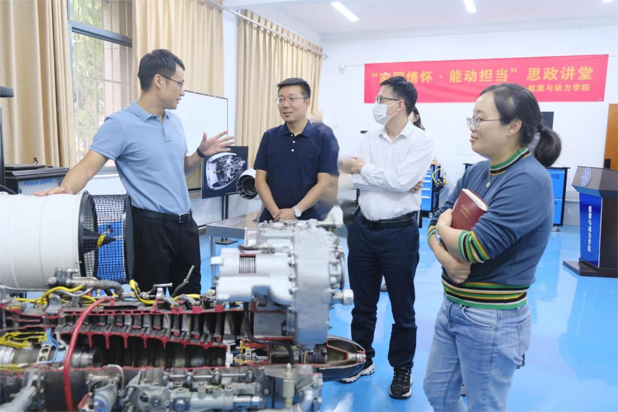 随后,双方结合基础党务工作、产学研合作、课程思政等方面的问题进行了深入探讨。座谈会后,调查团一行参观了能源与动力学院学院发动机实验室、控制虚拟仿真实验室等。