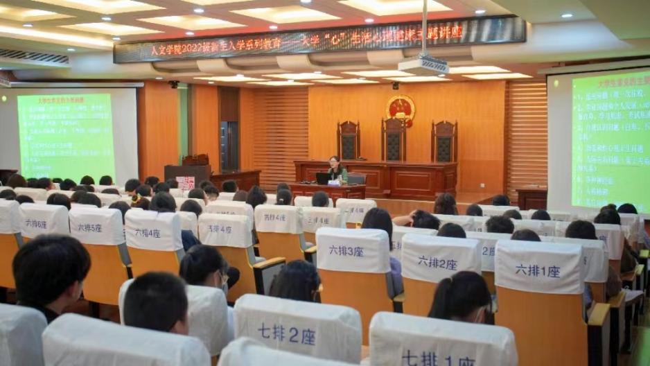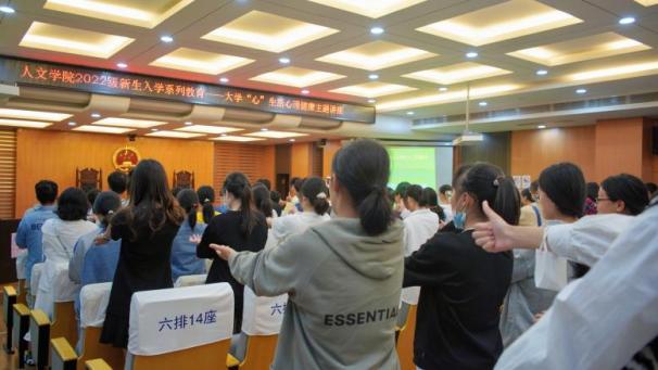 9月26日下午,糖心 2022级新生入学教育系列活动——大学“心”生活心理健康主题讲座在模拟法庭举行,全体2022级本、研新生参加了讲座。(文/图:胡梦兰、董唯)