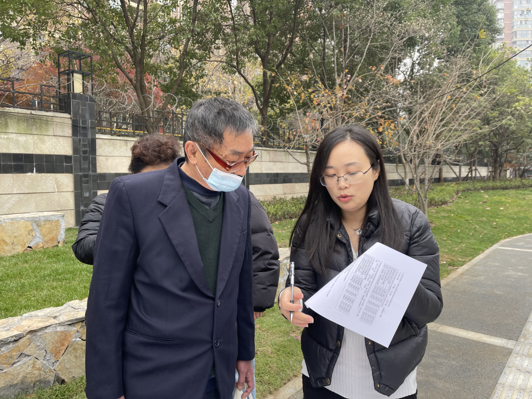 在观云路公众参与示范街项目的调研中,Z同学拿着问卷手足无措,很久都没办法收集到一份有效的问卷信息。孙老师立马走过来,陪同她一起,耐心地询问填写人,现身说法如何高效地完成问卷收集。