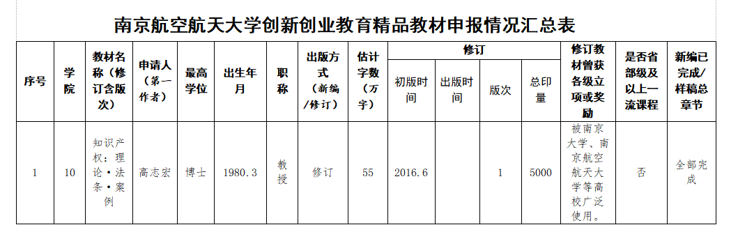 根据学校《关于开展学校2022年创新创业教育精品教材、案例库和数字课程立项建设工作的通知》的文件精神,经个人申请,资格审核,现将符合要求的申报情况公示如下: