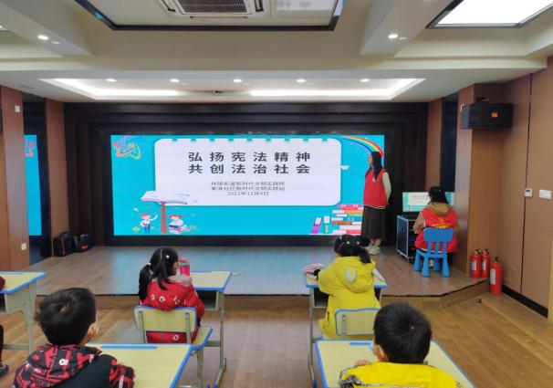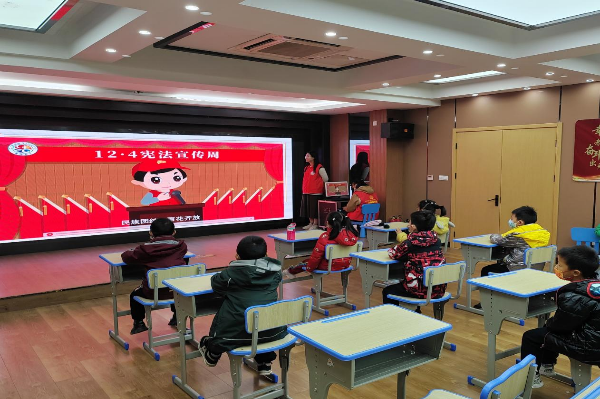 随后,志愿者们为小朋友们放映了宪法科普短片,将法律知识与小朋友们的学习、生活紧密联系,耐心普及相关法律知识,并带领小朋友们围绕“让法律常在心中,让法律伴我生活”的主题展开了互动讨论,现场气氛热烈。