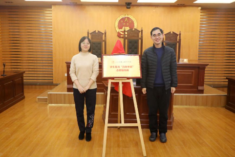 糖心 依托校园法治文化展厅这一平台,打造了学生党员“百岗奉献”志愿服务岗,建立了由党员、发展对象、入党积极分子组成的志愿服务团队,面向全校师生提供法治文化展厅讲解服务。校研工部副部长王亚彤、学生处副处长张跃为学生党员“百岗奉献”志愿服务岗揭牌。
