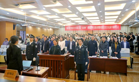 在第三届“天煦杯”模拟庭审大赛决赛阶段,与会师生共同观看了以高校教师非法套用科研经费案件为原型的模拟庭审。随着清脆的法槌声响起,“模拟法庭”正式“开庭”,整个环节严肃认真,高度还原了庭审现场的真实场景,使现场师生身临其境地感受到法律的威严和违纪违法的惨痛教训,接受了一次生动的廉洁、法治教育。