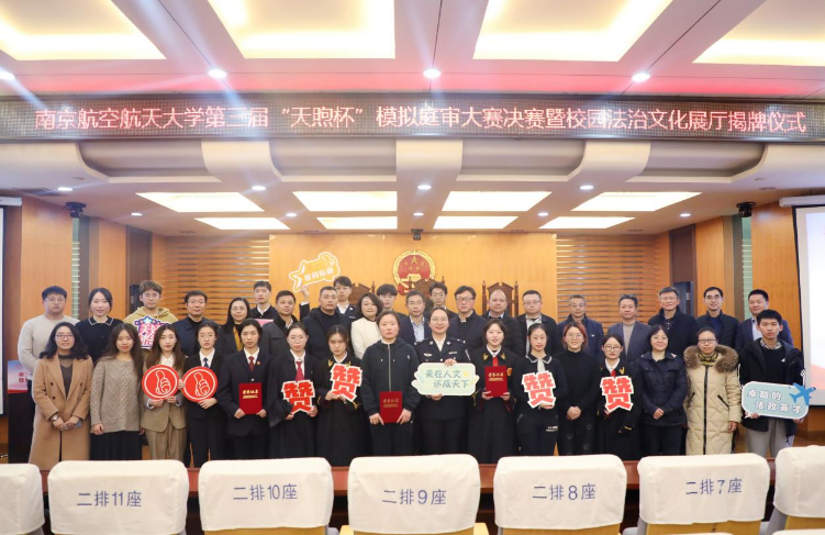 为深入学习党的二十大精神,全面贯彻习近平新时代中国特色社会主义思想,营造校园浓郁的法治文化氛围,12月7日晚,作为南航“宪法宣传周”主题活动和糖心 “清廉学院”建设系列活动之一的第三届“天煦杯”模拟庭审大赛决赛暨校园法治文化展厅揭牌仪式顺利举行。
