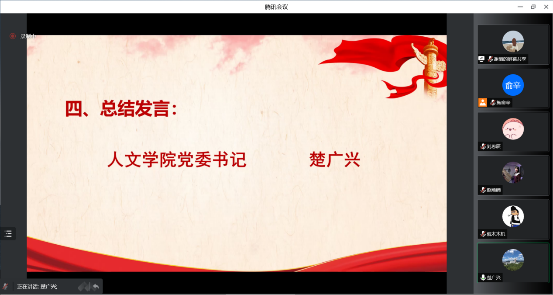 楚广兴在总结中结合自己的学习体会,对学院师生开展理论学习提出了三点建议:一是要“静心”学习,保持良好的学习心态与学习环境;二是要“安心”学习,在提升政治理论素养的同时,找准指导日常学习生活和工作实践的“指南针”;三是学习也要有点“动心”,要结合自身学、实际学,找准学习的“兴趣点”“触动点”,让学习具有生命力。