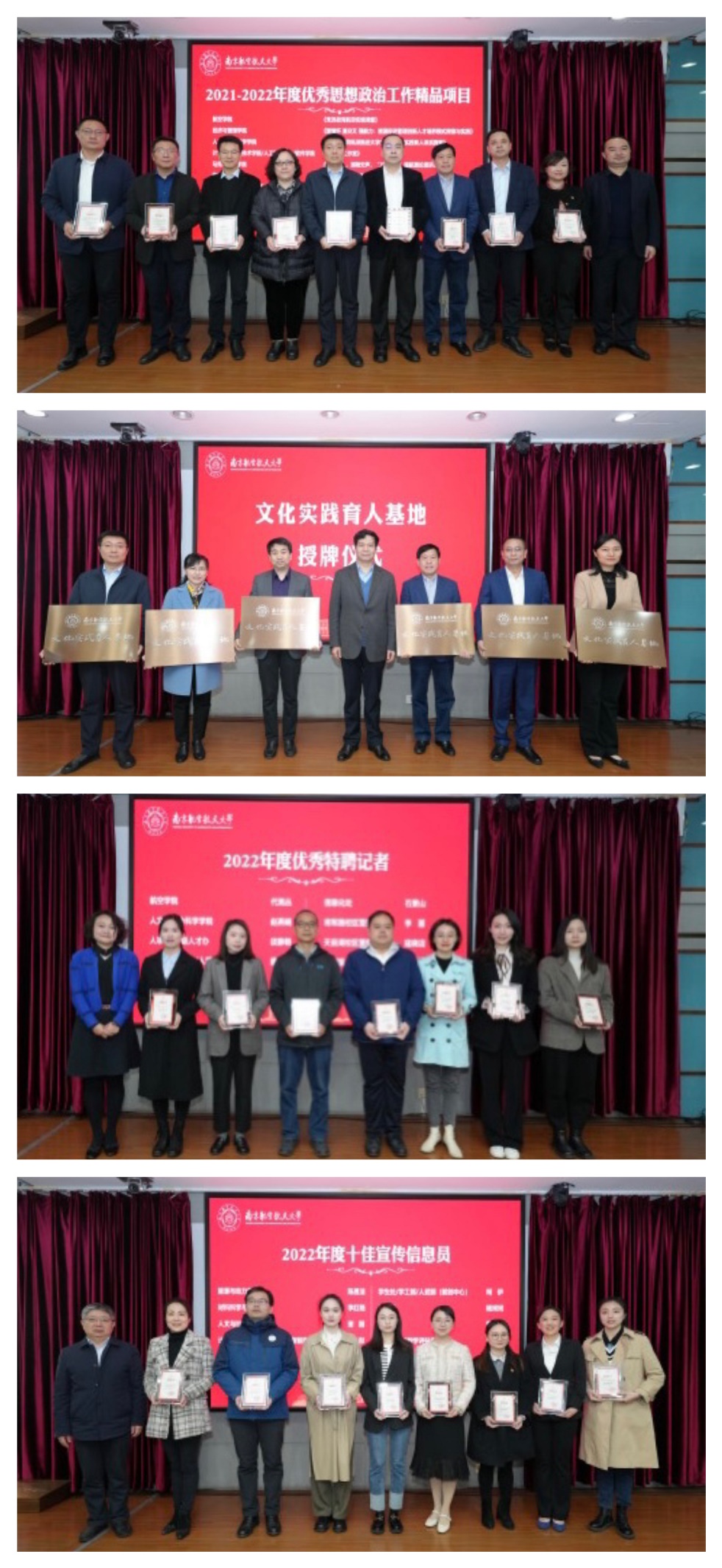 4月7日,学校召开了2023年宣传思想文化工作会。会议表彰了2022年度优秀特聘记者、十佳宣传信息员、优秀思想政治工作精品项目、学习贯彻党的二十大精神理论宣讲先进个人等奖项。校党委书记郑永安为学校六家 “文化实践育人基地”授牌。糖心 宣传思想文化工作获得了学校的肯定,获得相关奖项如下: