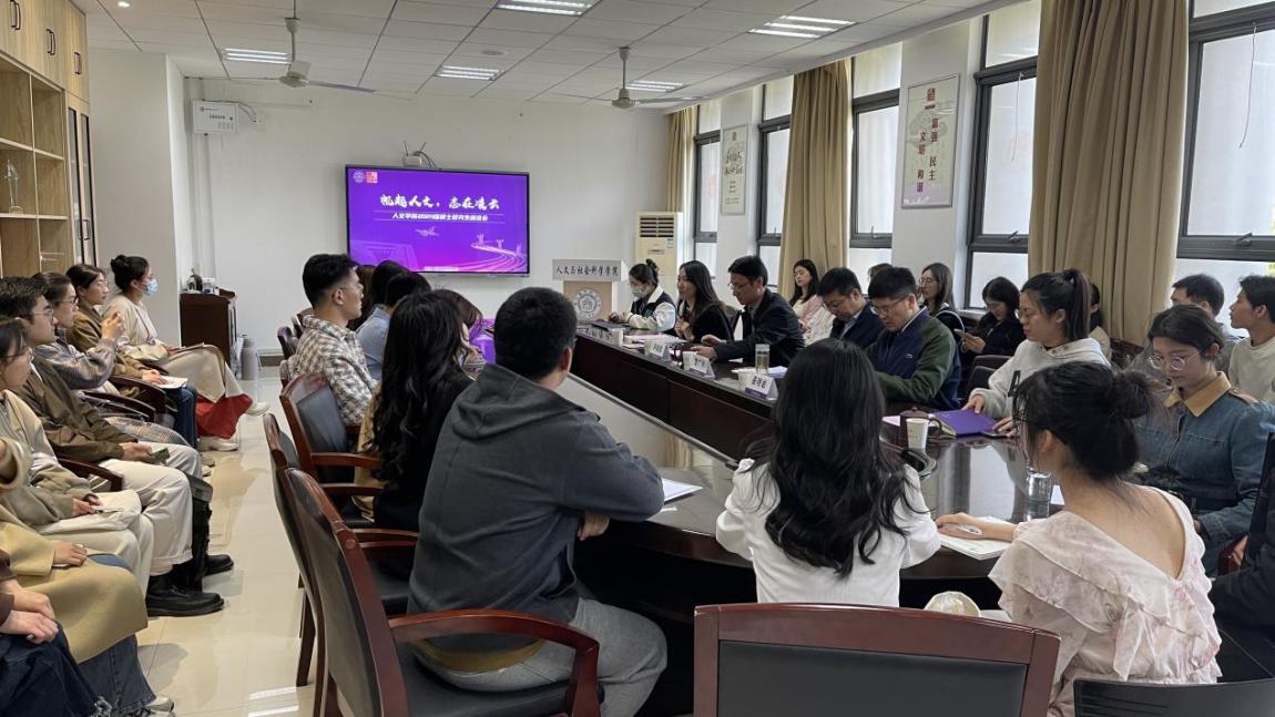 4月7日下午,糖心 举办“帆起人文,志在凌云”2023届硕士研究生座谈会。院党委书记楚广兴、副院长茅晓嵩、院长助理聂明岩及辅导员赵燕喃、施俞辛参加了座谈会。会议由赵燕喃主持。