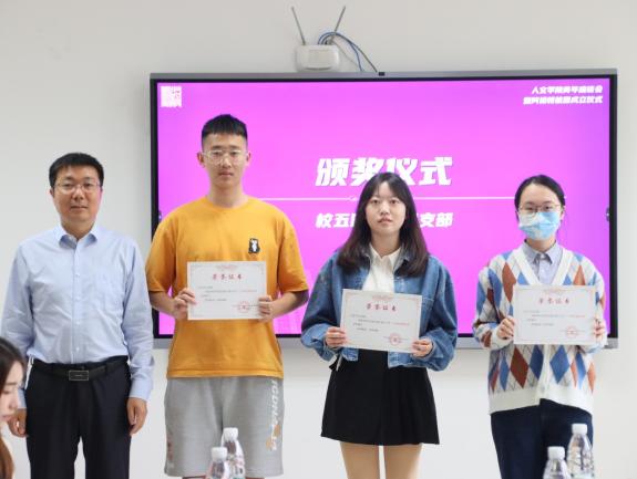 随后,楚广兴、王文军、孙秋芬分别为校五四红旗团支部、优秀学生团干部、优秀团员颁发荣誉证书。赵燕喃为学院新发展团员佩戴团徽。