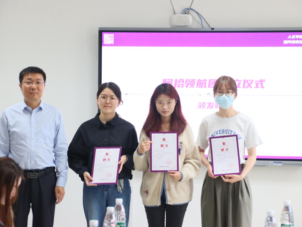 为更好地引领同学、服务同学、凝聚同学,学院举行了“阿拾领航团”成立仪式。楚广兴为“阿拾领航团”班委颁发聘书。