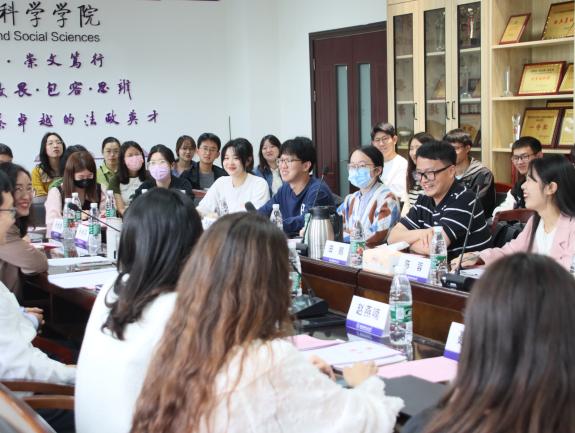 在座谈交流环节,同学们畅所欲言。大家就考研、就业、论文写作、参赛选题等方面的问题和困难坦诚交流,真诚沟通,同时对学院进一步做好学生服务工作提出意见和建议。与会老师认真倾听记录同学们反映的问题,并予以解答。楚广兴鼓励同学们努力学习、崇尚科学、追求真知,用不懈奋斗擦亮青春底色,用实际行动展现新时代人文青年的责任担当。