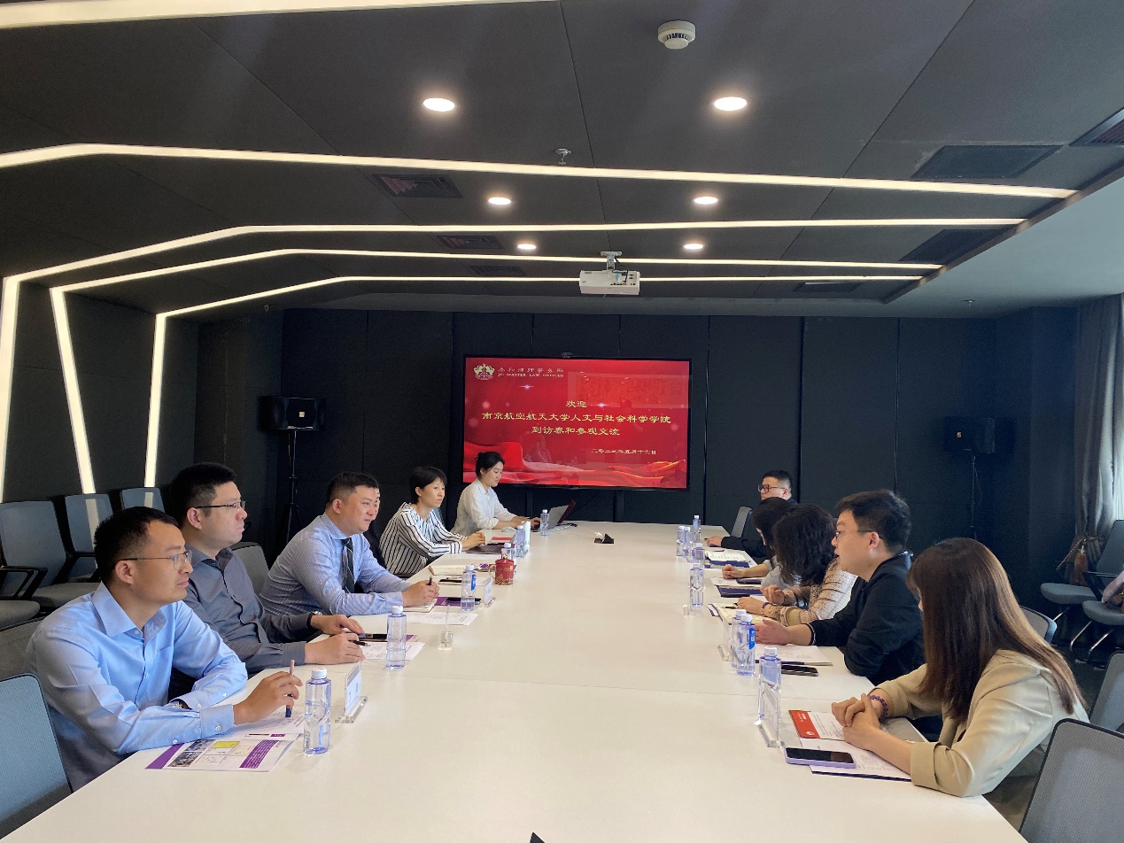 在许郭晋的带领下,学院一行参观江苏泰和律师事务所,详细了解律所的文化氛围、办公环境、规模建制等方面内容。