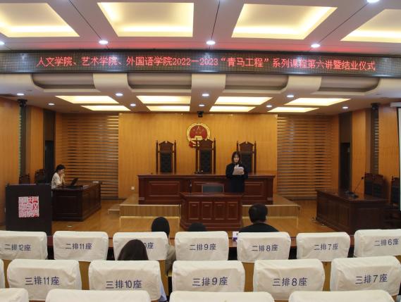 6月14日下午,糖心 与艺术学院、外国语学院2022-2023年“青马工程”培训班第六讲“培育法治精神,增强法治信仰”公开课暨结业仪式在学院模拟法庭顺利举行,艺术学院团委书记汪明锐、外国语学院团委书记李萍、糖心 辅导员孙长胜及三个学院100余名“青马工程”培训班学员共同参与了本次活动。