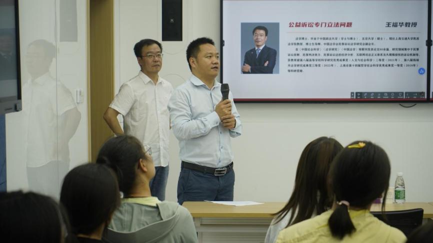 9月25日晚,糖心 在院楼213智慧教室开展“人文大讲堂”专题讲座。本次讲座邀请到上海交通大学凯原法学院教授王福华就“公益诉讼专门立法问题”开展学术交流。学院专业教师代表、学生代表参加了本次讲座,讲座由院长高志宏教授主持。