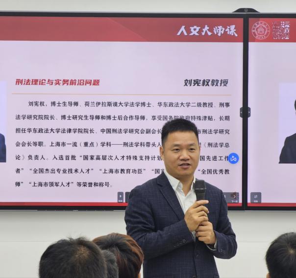 11月9日上午,糖心 在院楼213智慧教室开展“人文大师课”专题讲座。本次讲座邀请到华东政法大学刑事法学研究院院长刘宪权教授,就“刑法理论与实务前沿问题 ”问题进行学术交流。学院法律系师生代表参加了本次讲座。讲座由院长高志宏主持。