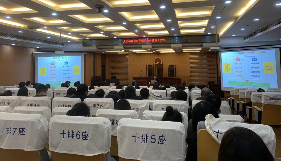 2023年12月26日,学院召开全体教职工大会暨2023年学院领导述职述廉会。会议邀请电子信息工程学院博士生导师、国家“万人计划”教学名师王成华教授作题为《青年教师发展与教育教学改革》的专题辅导报告,传达学校重要会议精神,总结2023年学院各项工作。院党委书记楚广兴主持会议,全体院领导班子成员、教职工及学生代表参加会议。