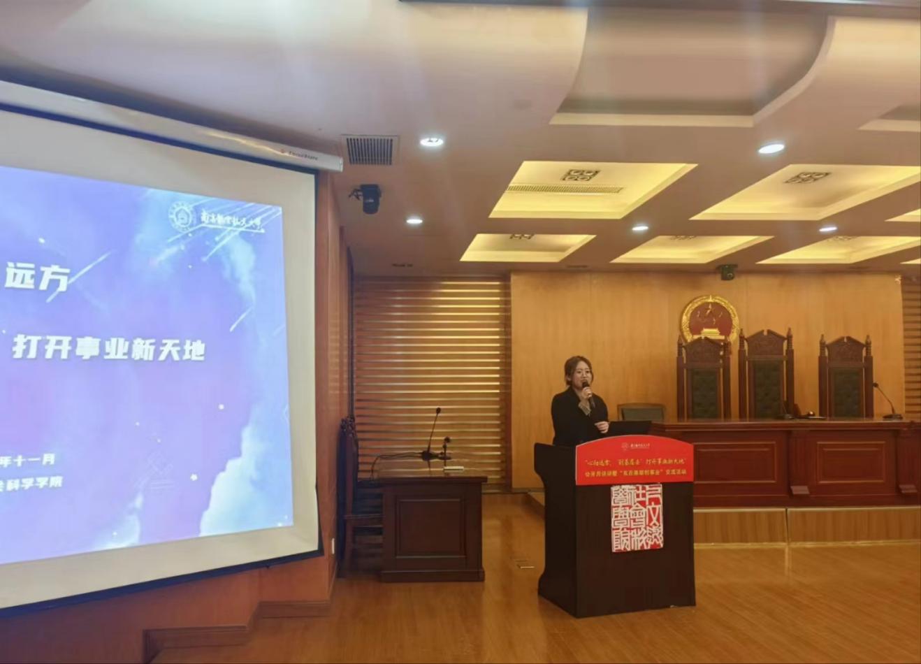 不了解基层,又怎么会去选择基层?在“什么是基层”部分,聂小芳告诉同学们“基层”包括什么,并通过一段视频来讲解了大学生前往基层有哪些途径,与同学们分享高校毕业生到基层就业的途径和政策。