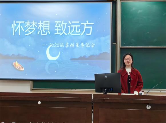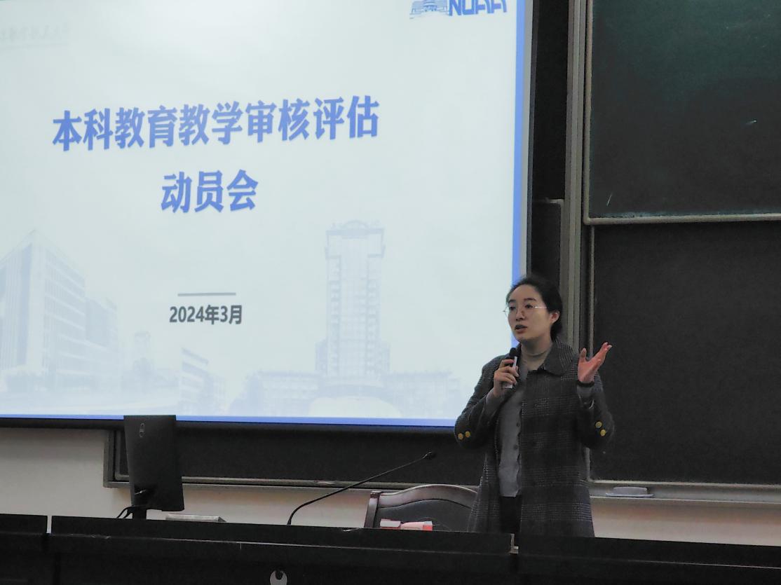 会上,辅导员聂小芳系统全面的介绍了本科教育教学审核评估的背景意义,并且围绕评估理念、评估重点、评估流程、评估形式等进行充分讲解。她还详细介绍了学院办学情况、专业培养等内容,并对学风建设、日常行为礼仪等提出明确要求和倡议,引导学生展示出当代大学生的良好风貌;她鼓励同学们加深与老师的沟通,努力提高自身素质,以饱满的学习热情、昂扬的精神风貌迎接此次本科教育教学审核评估。