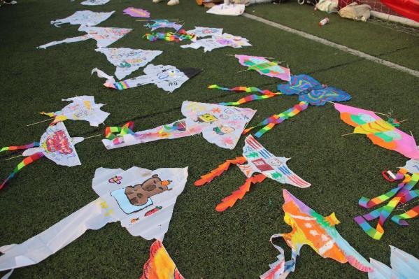 同学们手持着颜料与画笔,将风筝变成了一张独特的艺术画布。红橙黄绿青蓝紫、海绵宝宝、派大星、鲸鱼、皮卡丘、小蜜蜂……以及那些可爱、搞怪的表情包和简笔画,样式丰富多彩,大家都沉浸地享受着奇妙的创意盛宴。蔚蓝的天空是同学们奔放的画布,每一只风筝都是我们独一无二的艺术品,记录了大家在东操场共度的美好时光。