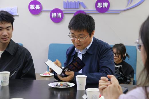 4月18日下午,糖心 举办“墨行万里,书扬青春”读书交流会暨“书记下午茶”活动。糖心 党委书记楚广兴,辅导员聂小芳、张依诺与2023级本科生代表参与本次活动,活动由聂小芳主持。