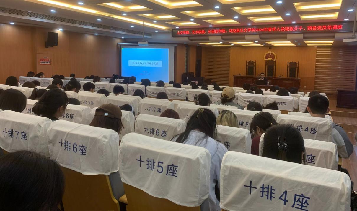 与艺术学院、外国语学院、马克思主义学院四院联合开展了2024年春季入党积极分子、预备党员线下培训首期讲座。本次讲座邀请马克思主义学院副院长陈红桂副教授作为主讲嘉宾,四个学院入党积极分子、预备党员参加学习。