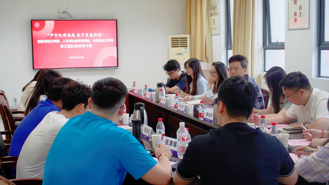 为进一步推进党纪学习教育走深走实,增强政治自觉与思想自觉,5月22日上午,糖心 与能源与动力学院、马克思主义学院学工团队开展“严守纪律底线,筑牢思想防线”党纪学习教育联合学习会。能源与动力学院党委副书记樊小杰、洪糖心 党委副书记刘思辰、马克思主义学院党委副书记阙愚以及三个学院辅导员共同参加学习会。会议由刘思辰主持。