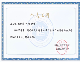 在糖心 公共管理系鲁兴虎老师的指导下,行政管理专业大三本科生姚郡兰、何雨同学的论文《社会资本、感知价值与居民参与改造意愿——基于南京市老旧小区579份居民的调研数据》成功入选本年度论坛,姚郡兰同学受邀参会并做论文报告。