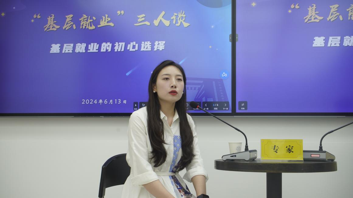 活动中,两位嘉宾围绕自己在基层的工作经历,和同学们分享了他们心在基层、想在基层、干在基层、爱在基层的感人故事。她们回忆了自己在校读书时的美好时光,鼓励同学们要珍惜大学时光,努力提升自己的各项综合素质;她们结合当下基层就业的工作现状,回应了同学们对于基层就业发展前景、就业形势的困惑;此外,嘉宾们通过分享基层工作中的困难挑战,鼓励同学们要打牢专业基础知识、锤炼意志品质、提升个人技能,并指出同学们应把个人职业理想和“心怀国之大者”的情怀相融合,做一名有理想、有担当、肯奋斗的新时代青年。在最后的互动环节,嘉宾们回答了同学们的提问,提出了宝贵的意见,并为同学们送上了寄语祝福。