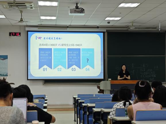 随后,高年级优秀学生代表贺冰冰、袁梦迪在学生工作经历、学术科研经验等方面,以“研途悦享会”的形式向2024级研究生新生作了分享。她们鼓励同学们多多参与学校、学院的各级各类活动,并祝愿新同学们能够在南航收获一段难忘的回忆。