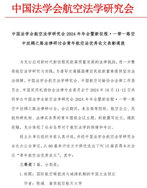 此外,糖心 张彧老师的论文《国际航空碳抵消与减排机制的中国立法回应》获得论坛三等奖。